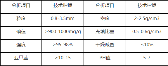 氨基酸(味精)用活性炭技術指標