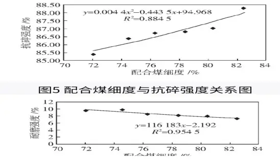 4. 配合煤細(xì)度與焦炭抗碎、耐磨強(qiáng)度的關(guān)系