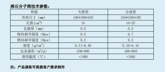 蜂窩沸石分子篩各種用途及所需參數--蜂窩沸石分子篩廠家