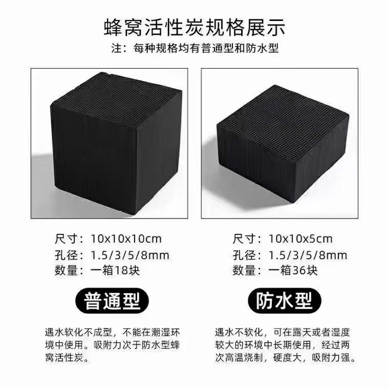以竹之韻800碘值防水和600碘值防水的蜂窩活性炭為例: